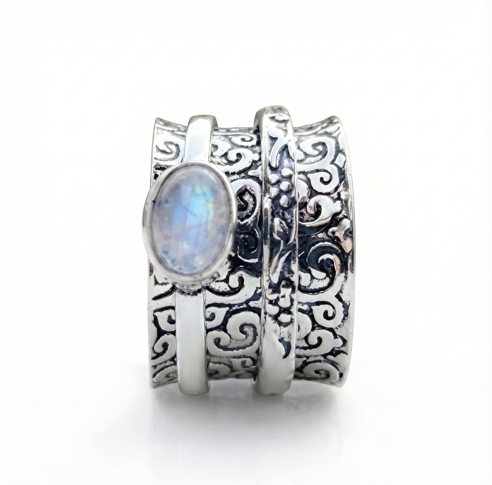 Handmade Ring-925 Sterling Silver Spinner Ring-Moonstone Spinner Ring-June Birthstone-Promised Ring-Fidget Ring-Gift For Her