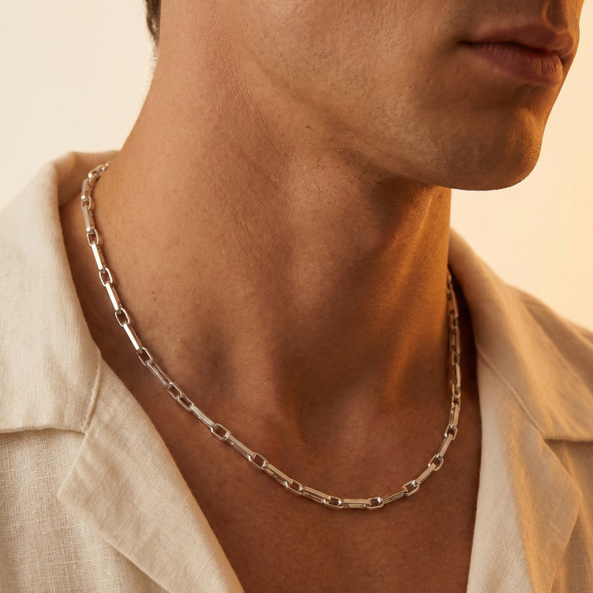 Presenting our refined thin chain, designed for those who appreciate clean lines and effortless elegance. Crafted with sleek, elongated links, this chain offers a modern silhouette with a subtle shine that complements every outfit. Lightweight and comfortable for all-day wear, it looks equally stunning worn alone for a minimalist statement or paired with a pendant for added charm.