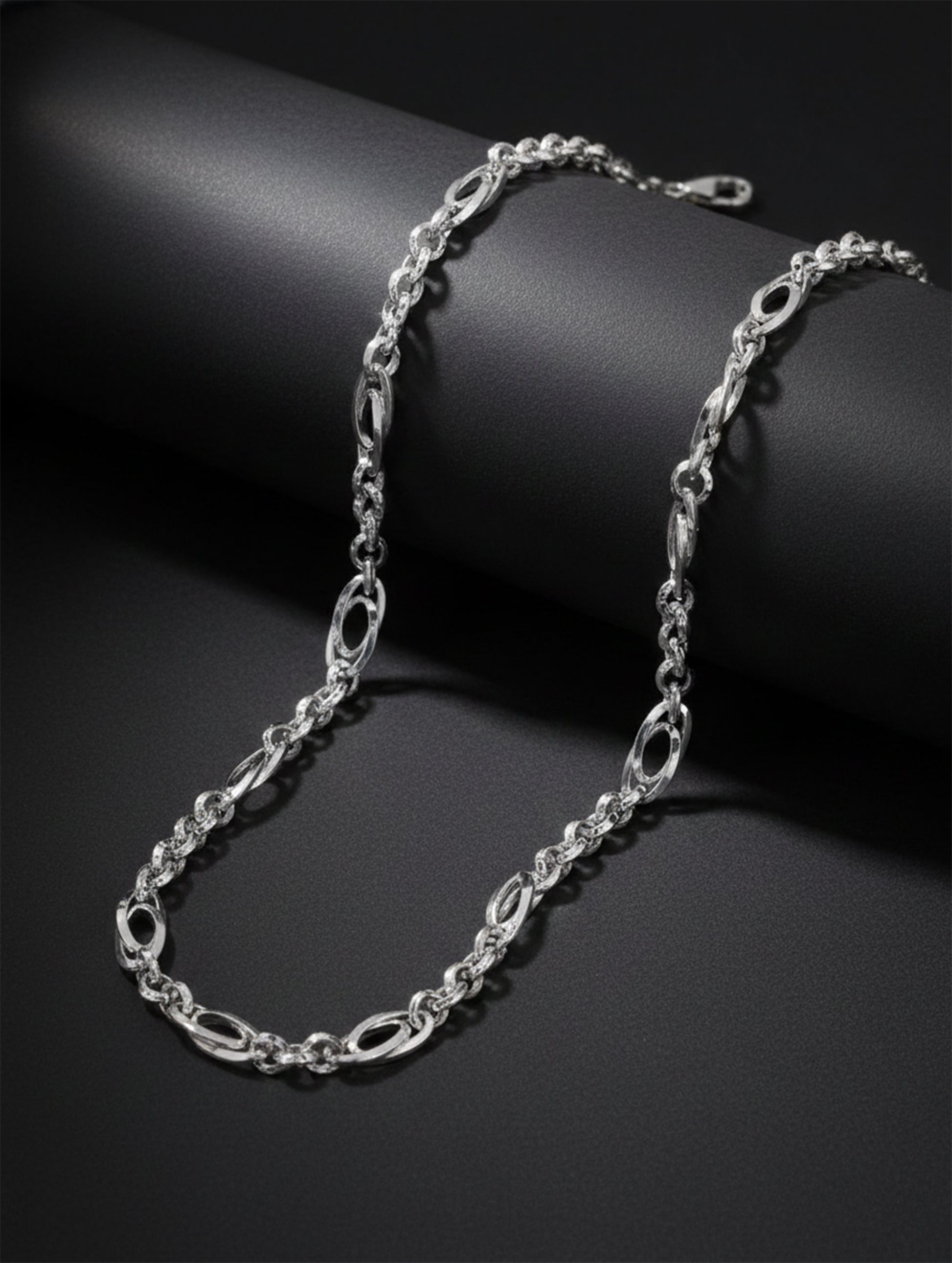 Celestially inspired and effortlessly elegant, this thin chain reflects the beauty of refined design with its graceful, elongated links and luminous finish. Light in weight yet rich in detail, it drapes smoothly along the neckline, adding a subtle sparkle to everyday looks. Perfect for solo wear or layered styling, this chain captures a modern, airy charm that feels timeless and endlessly versatile.